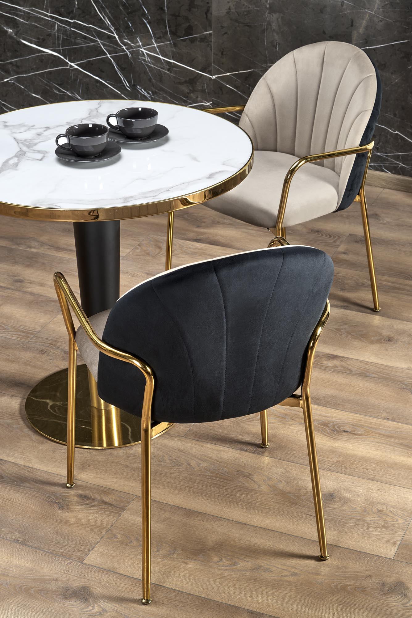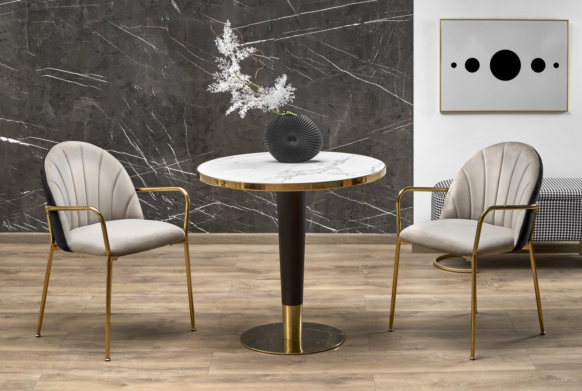 MORATA asztal, kerek, szín: fekete márány/fekete/arany