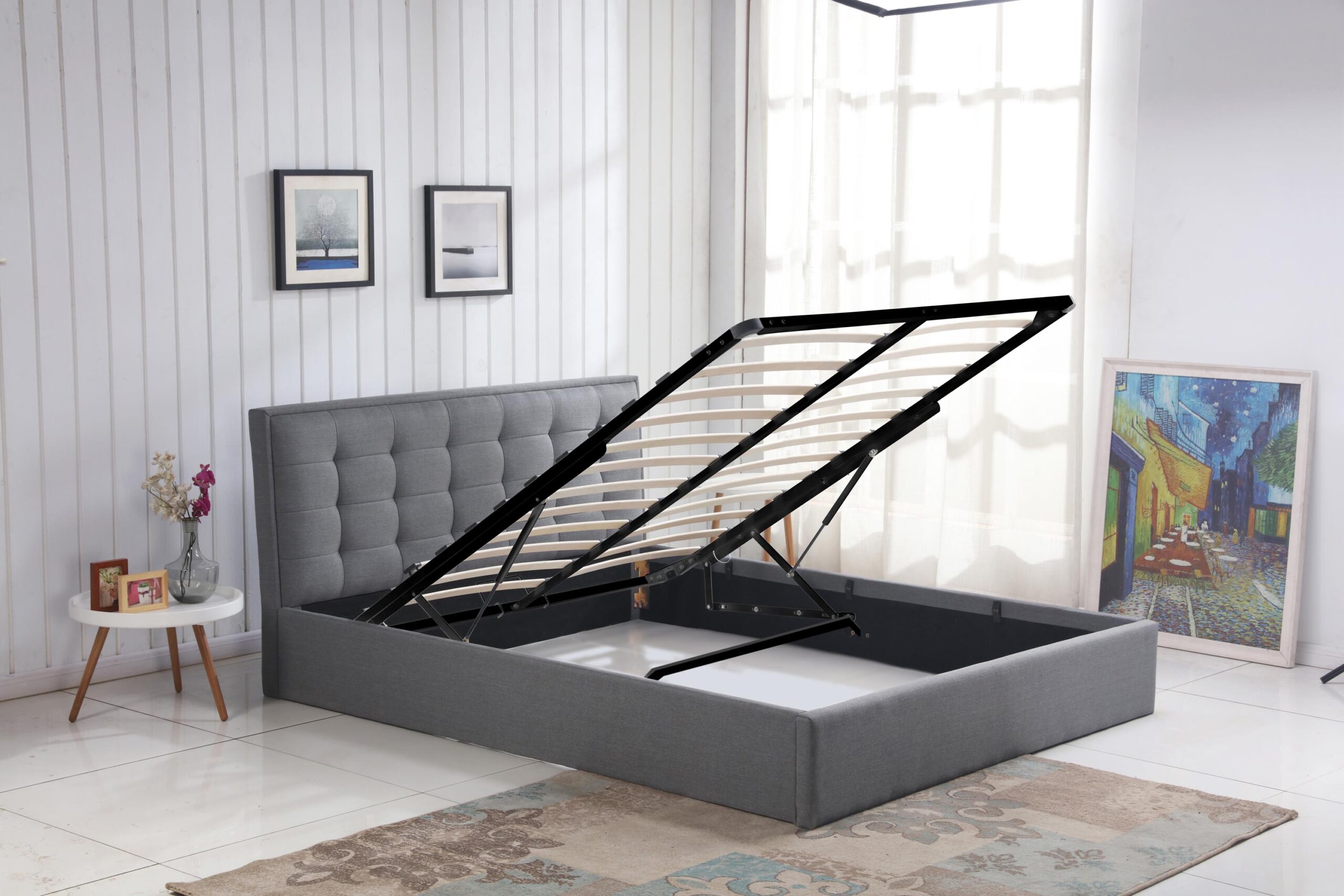PADVA 140 ágy, ágyneműtartóval, szín: szürke
