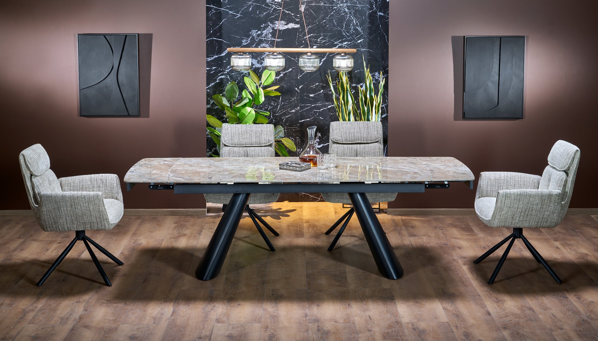 Vince bővíthető étkezőasztal – barna márvány / fekete