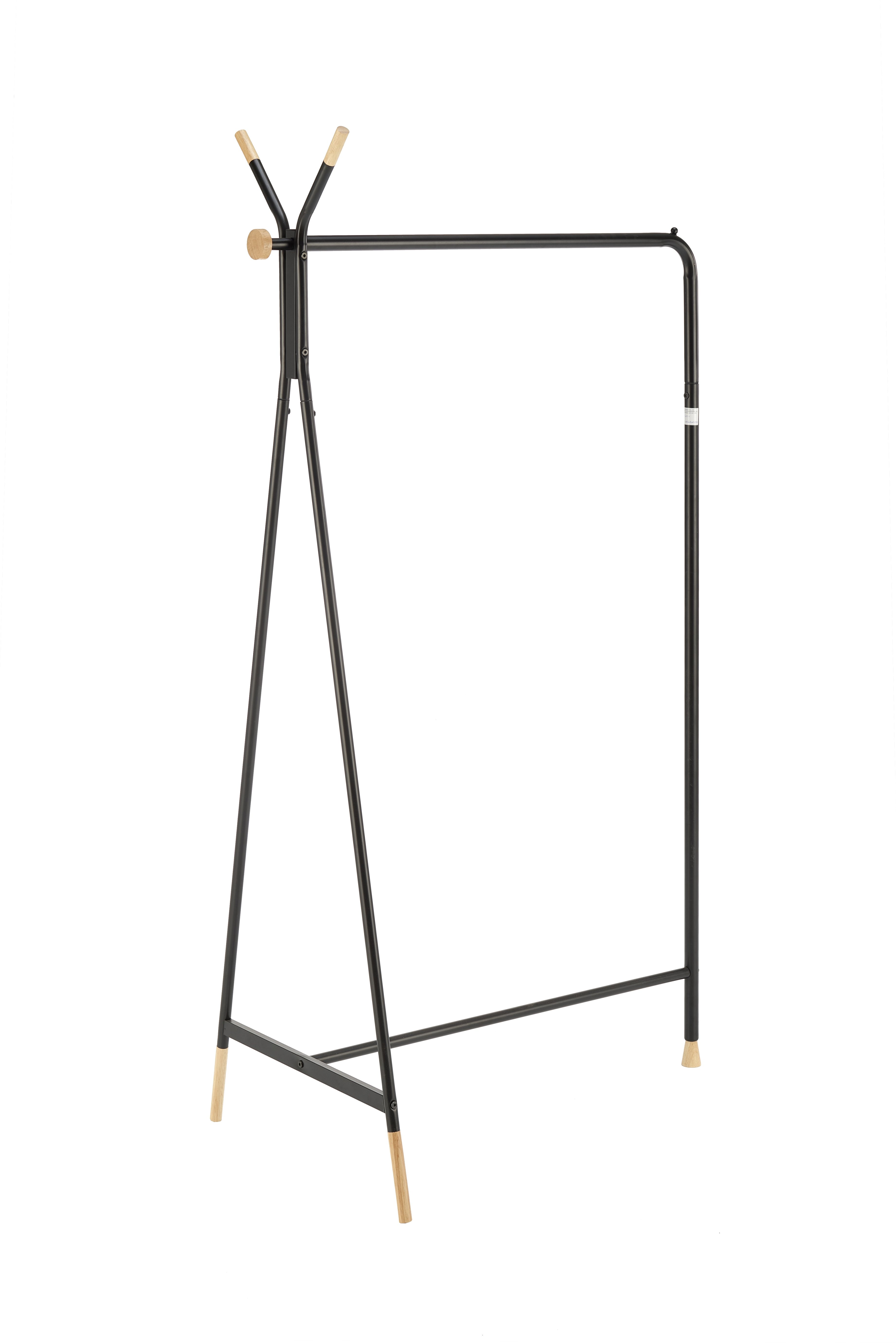 méretek: 91/56/165 cm, anyag: porszórt acél / tömör fa, szín: fekete / natúr