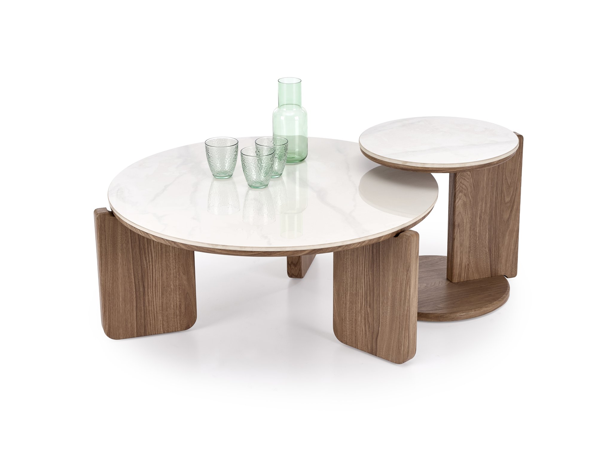 Diuna dohányzóasztal (2 db-os szett) – fehér márvány / világos dió