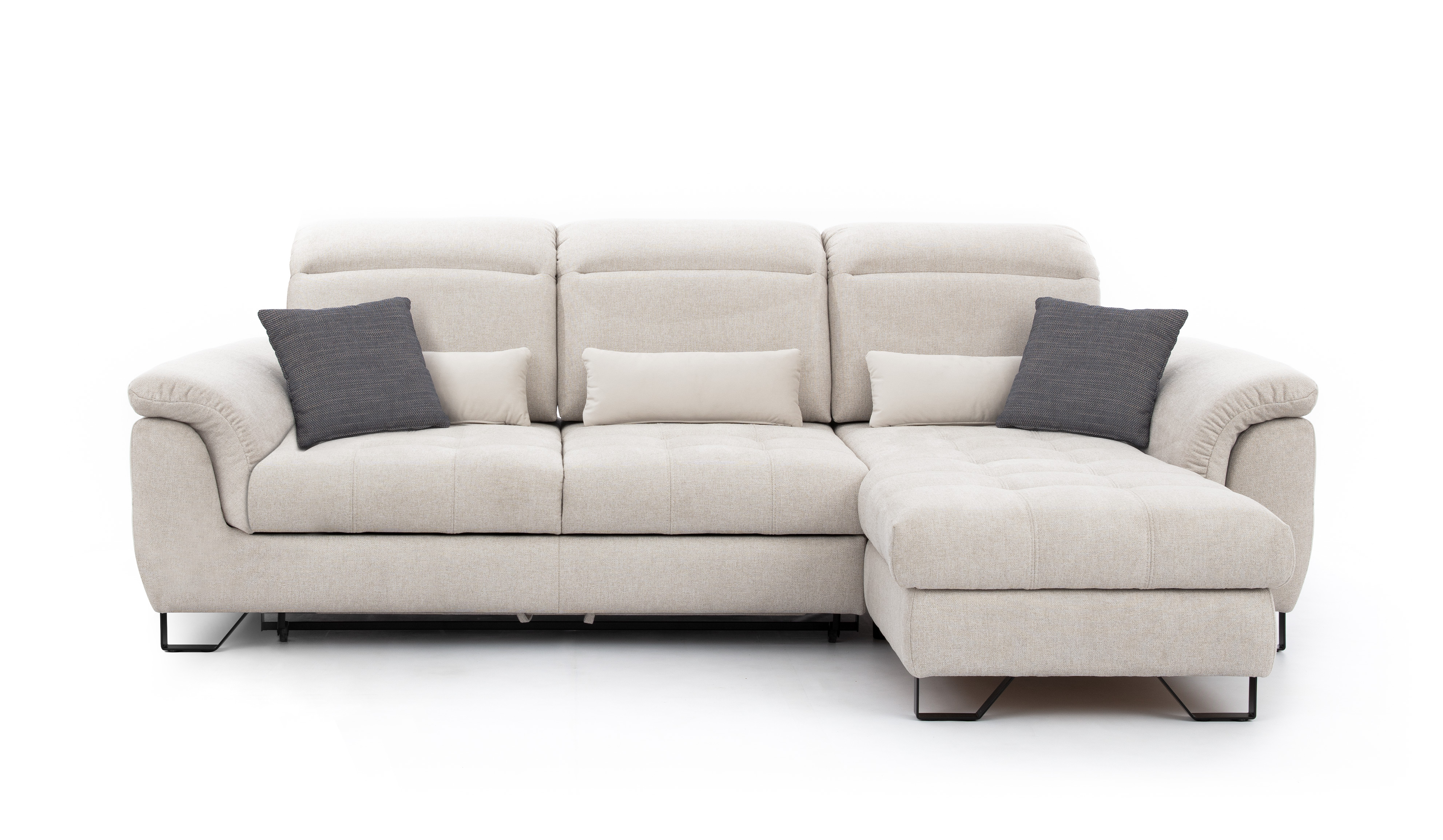 A képen látható 280 x 201 cm méretű sarokkanapé könnyedén ágynak nyitható és egy hatalmas felnyíló ágyneműtartó is található benne