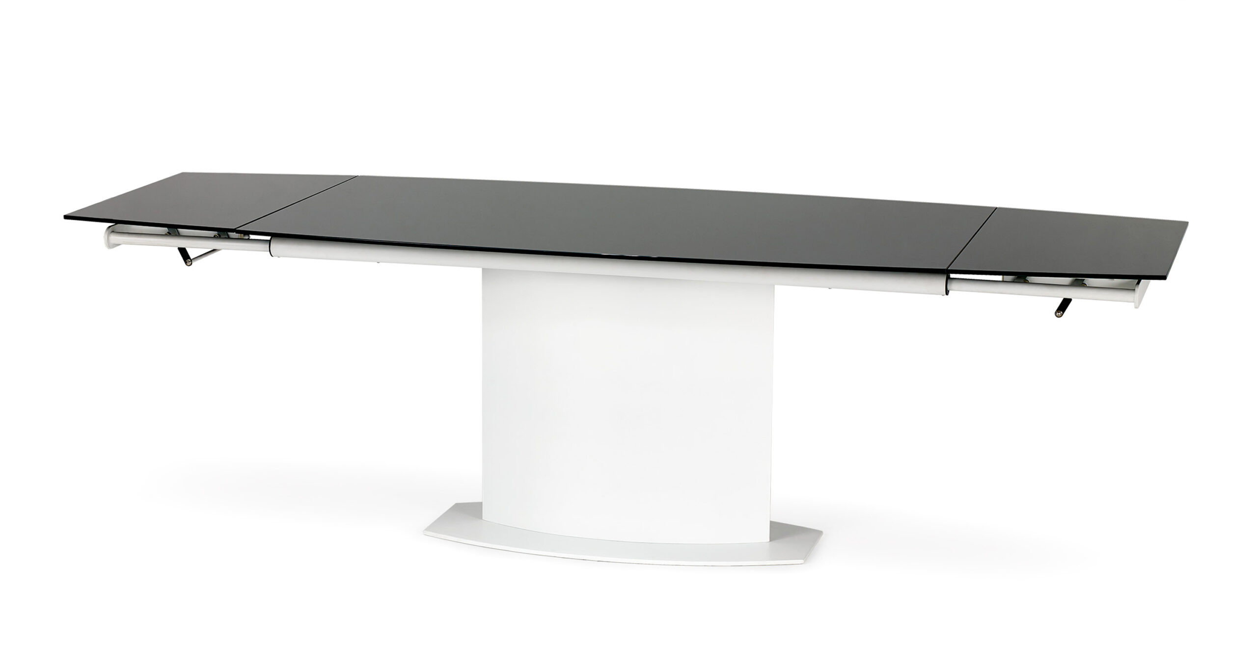 összecsukható asztal, méretek: 160-250 / 90/76 cm, anyaga: üveg / porszórt acél, szín: fehér és fekete