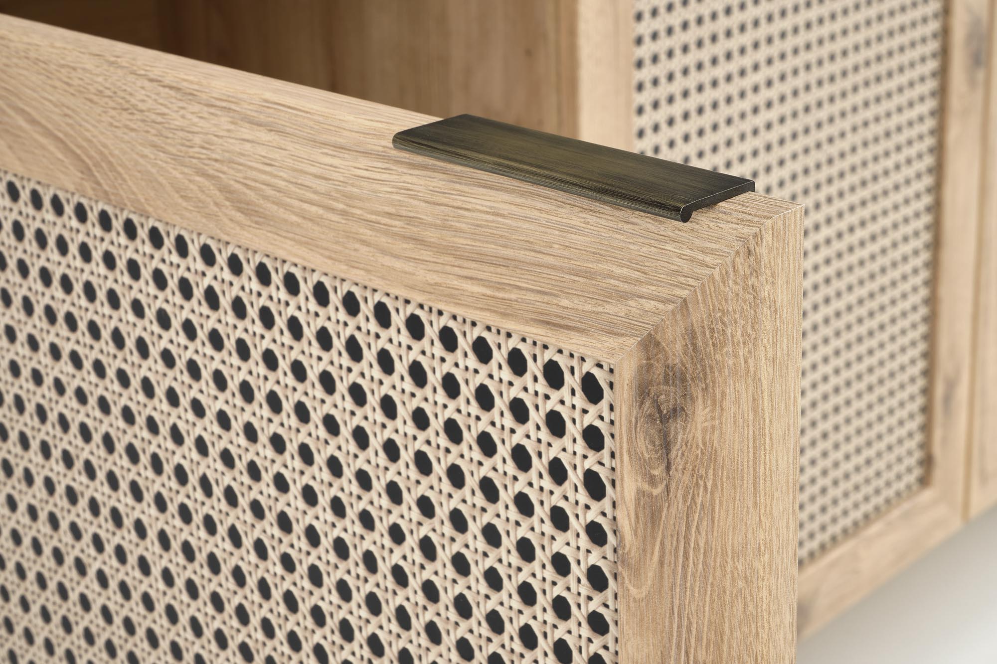 komód, méretek: 160/40/85 cm, anyag: laminált faforgácslap / laminált MDF / laminált HDF lap / polipropilén, szín: artisan tölgy / fekete