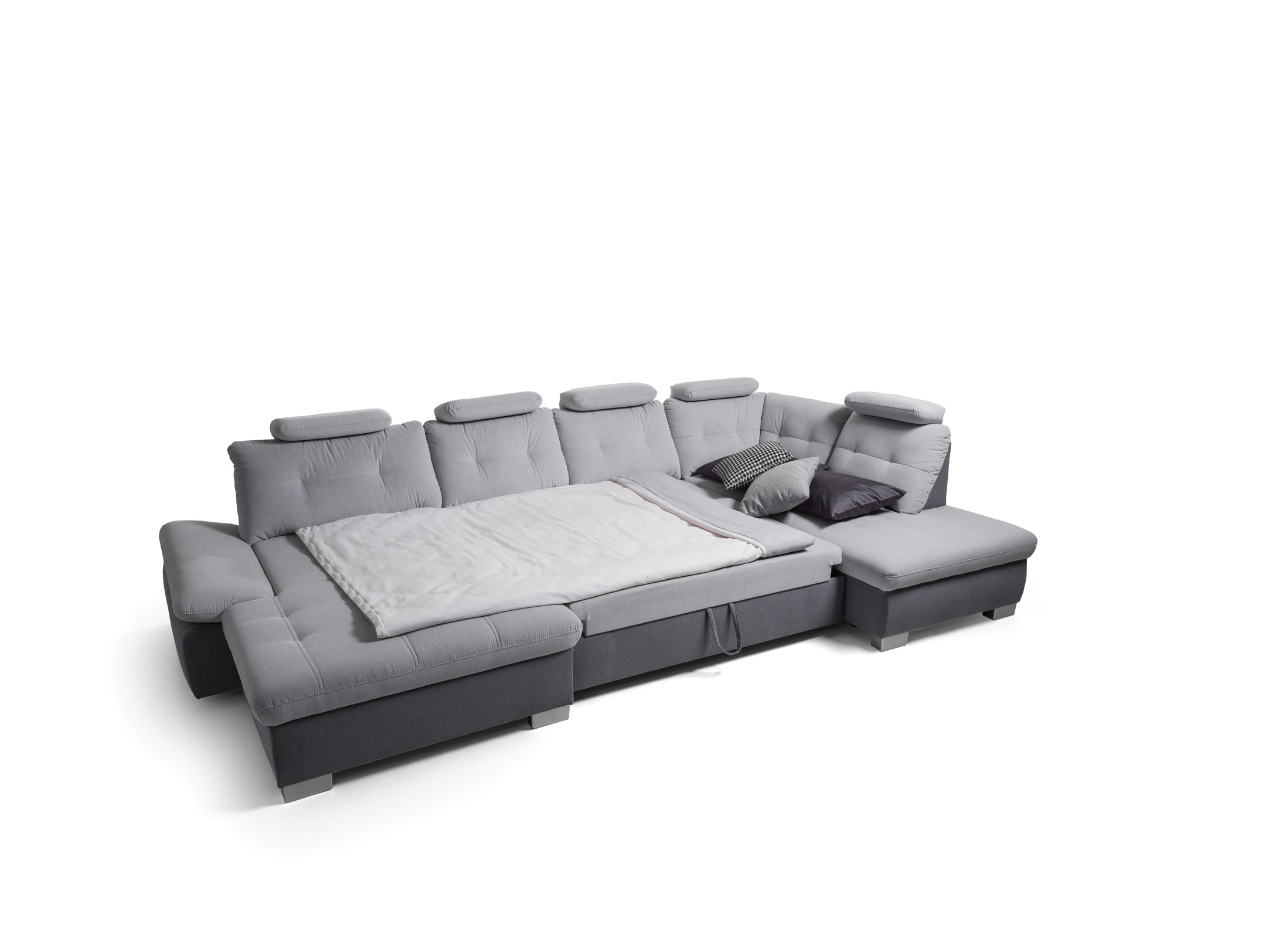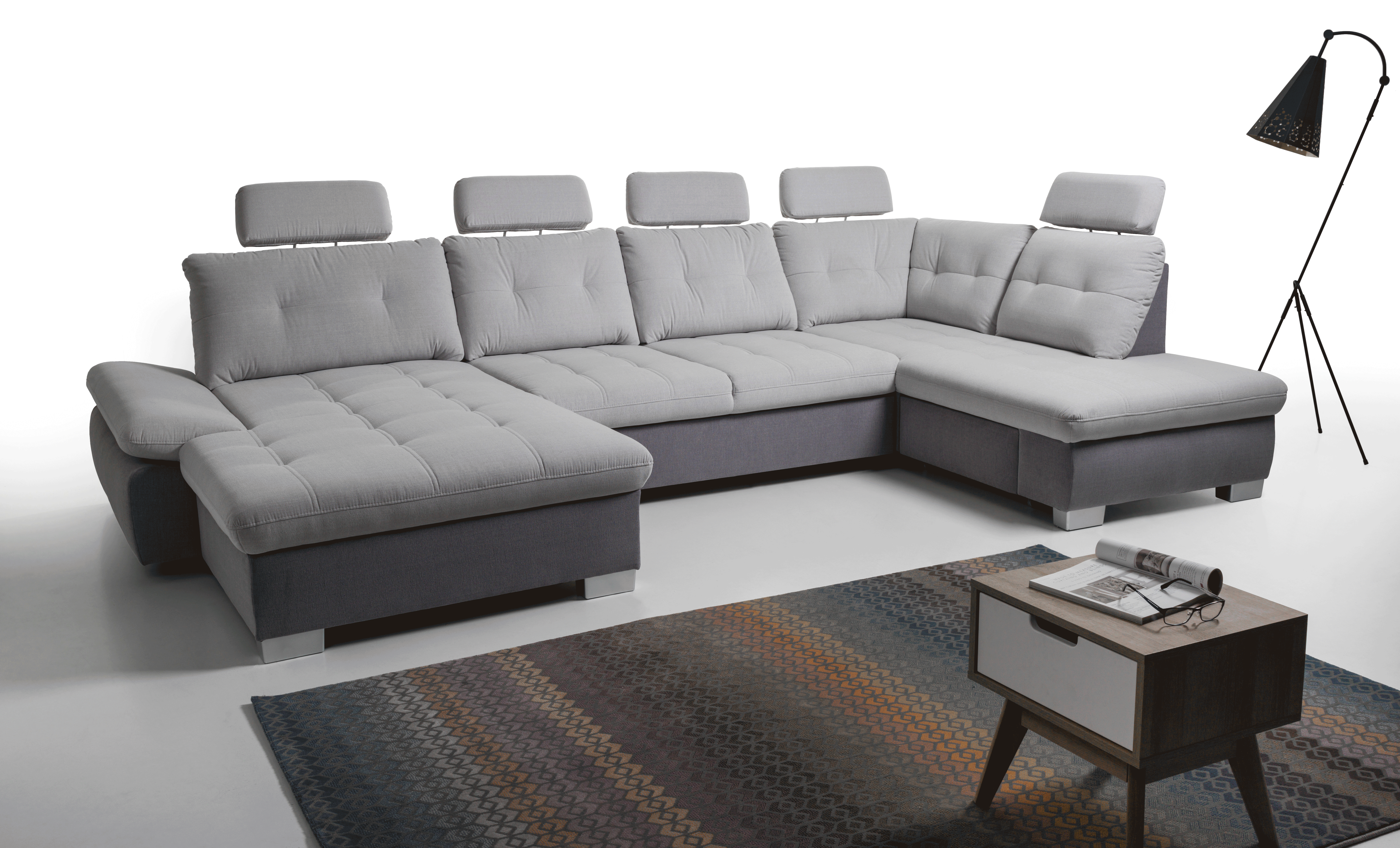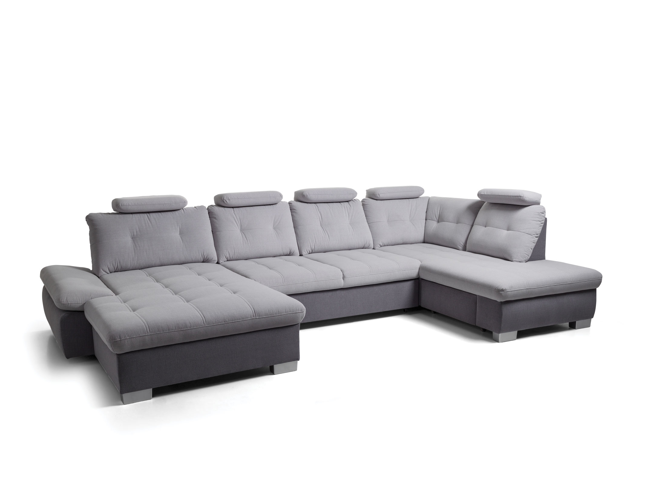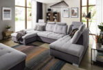 190 cm x 360 cm x 205 cm-es ágynak nyitható, ágyneműtartós U sarokgarnitúra állásban, színben és kárpit típusban rendelhető, akár valódi bőr kárpittal is. A fix háttámlákat opcionálisan áthelyezhető fejtámlákkal egészíthet ki, melyek dőlésszöge változtatható. A karfa ugyancsak állítható. A bútorhoz extra deréktámasztó párna is rendelhető. A Colombo U alakú sarokgarnitúrában ágygépes rendszerű vendégágy funkció és fiókos ágyneműtartó található. A háttámlák mélységükben változtatható így mindenki úgy alakíthatja magának a bútort ahogy neki kényelmes. Tűzött háttámlái és ülőfelülete modern megjelenést biztosítanak. A minőségi bútorvázat hullámrugók és hideg habszivacs borítja amely így tökéletes kényelmet nyújt használójának. Ugyanebből a bútorcsaládból több méretben L alakú változatot is talál kínálatunkban.