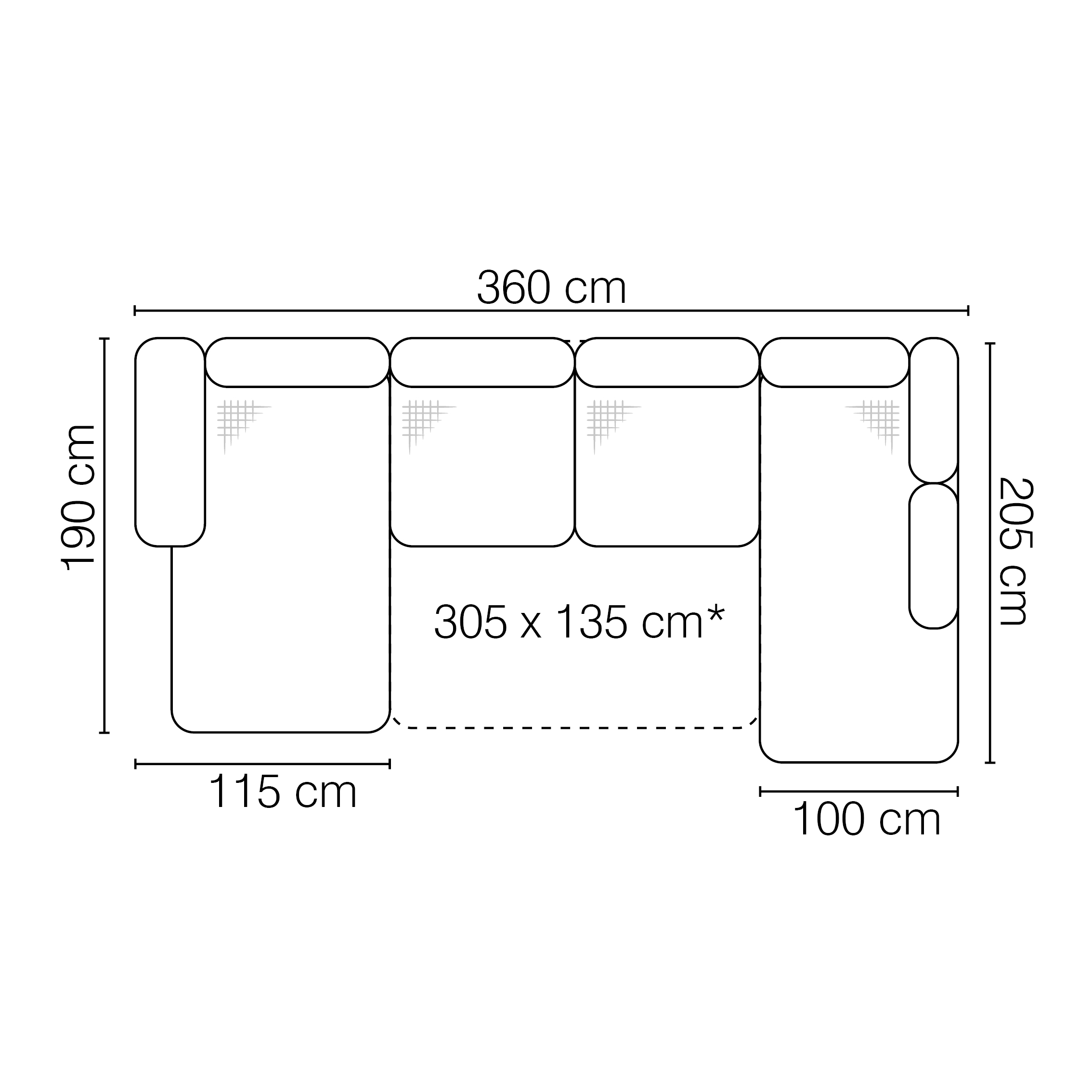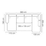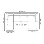 Méret: 190 cm x 360 cm x 205 cm