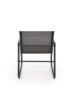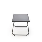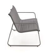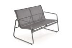 méretek: kanapé-114/74/76/38 cm, fotel-60/74/76/38 cm, dohányzóasztal-75/45/41 cm, kerti szett (kanapé + fotel 2x + dohányzóasztal), anyag: porfestett acél / üveg / háló, szín: sötétszürke