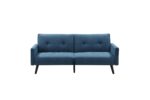 méretek: 200 / 86-102 / 83-42 cm, lábtartó – 97/71/42 cm, kihajtható kanapé lábtartóval, anyaga: szövet / tömör fa, rugók színe: kék