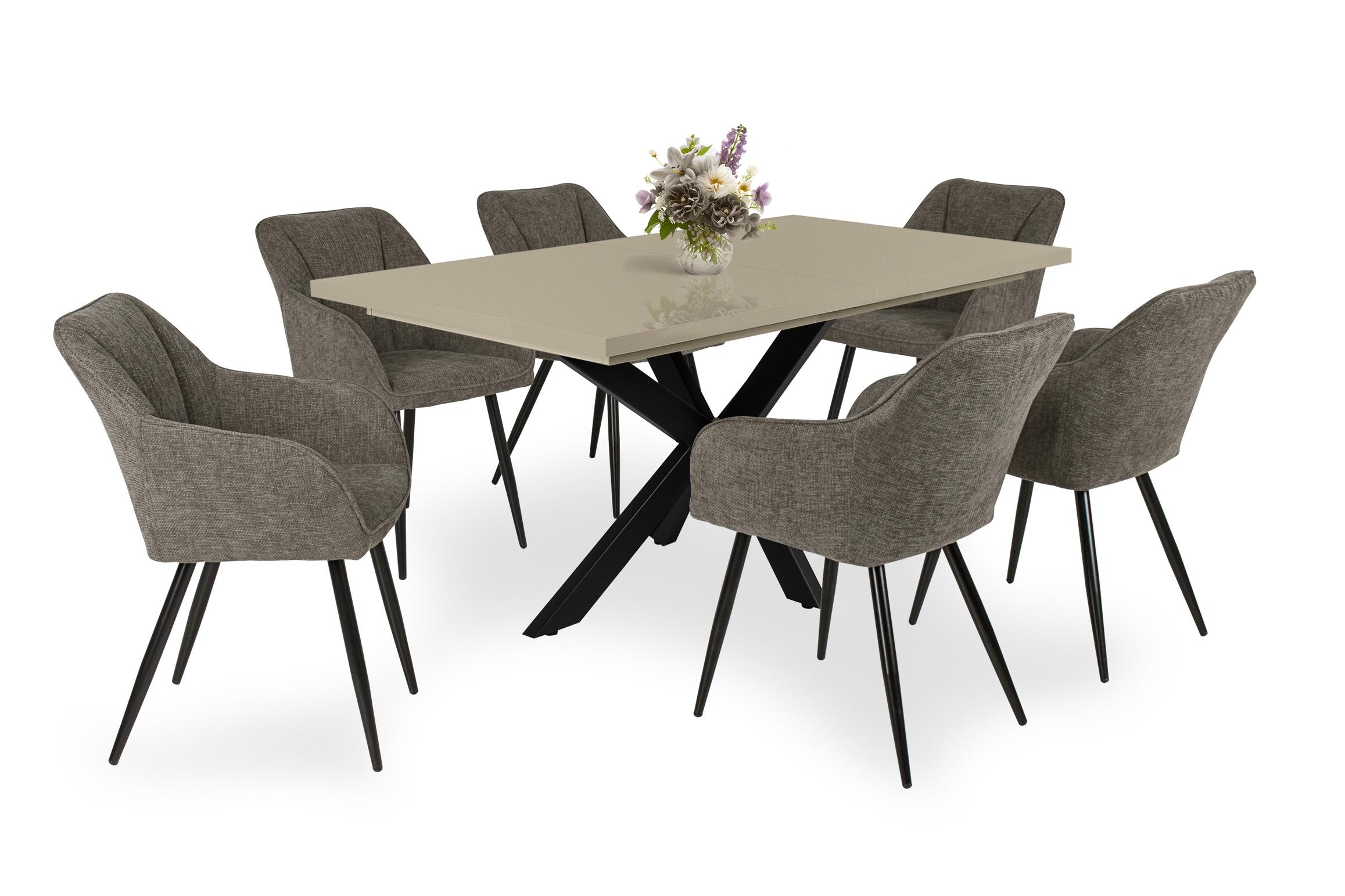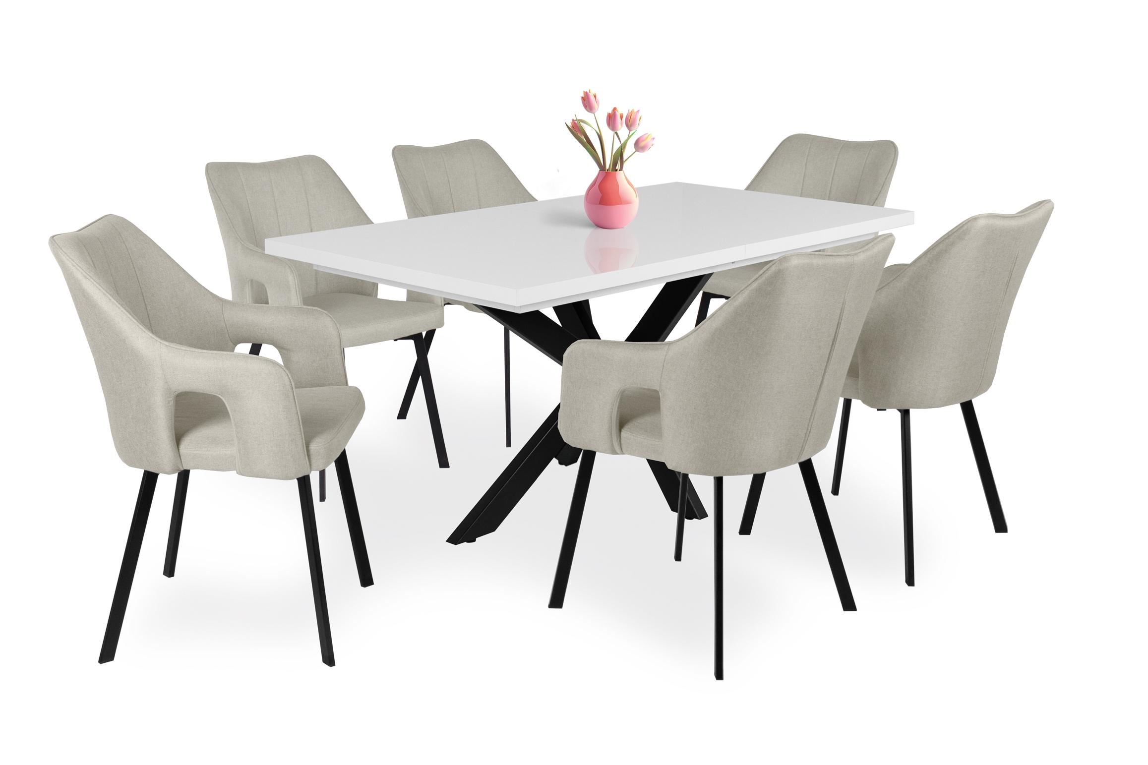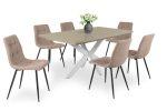 Pedro asztalunk tökéletesen mutat modern, valamint klasszikus stílusú székekkel. Ha vendégek érkeznek, akkor is kényelmesen elférnek majd, hiszen a 140×80 cm-es, 6 személyes asztal további 40 cm-rel bővíthető. 8 különböző színből van lehetőség választani, amelyek fehér, justus tölgy, sonoma, artisan tölgy, katthult, san remo, canyon tölgy, iszap tölgy.
