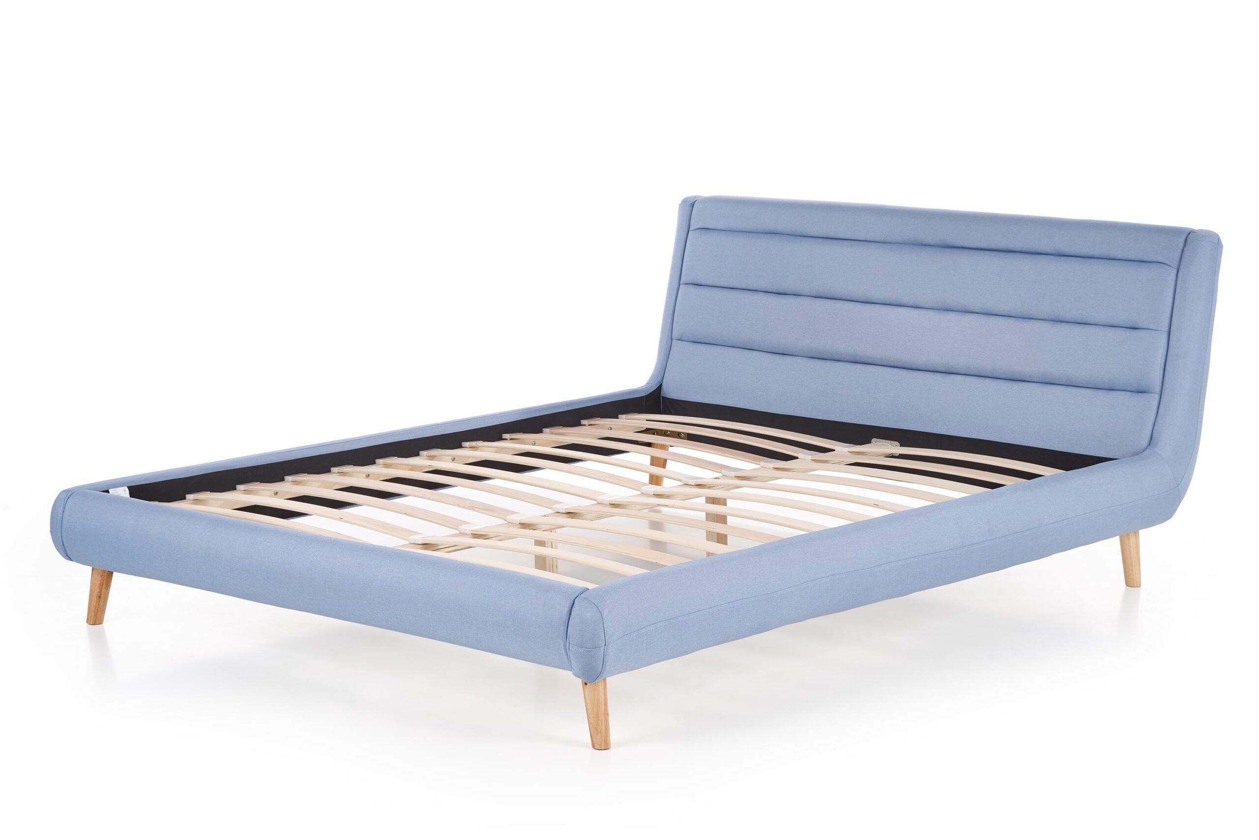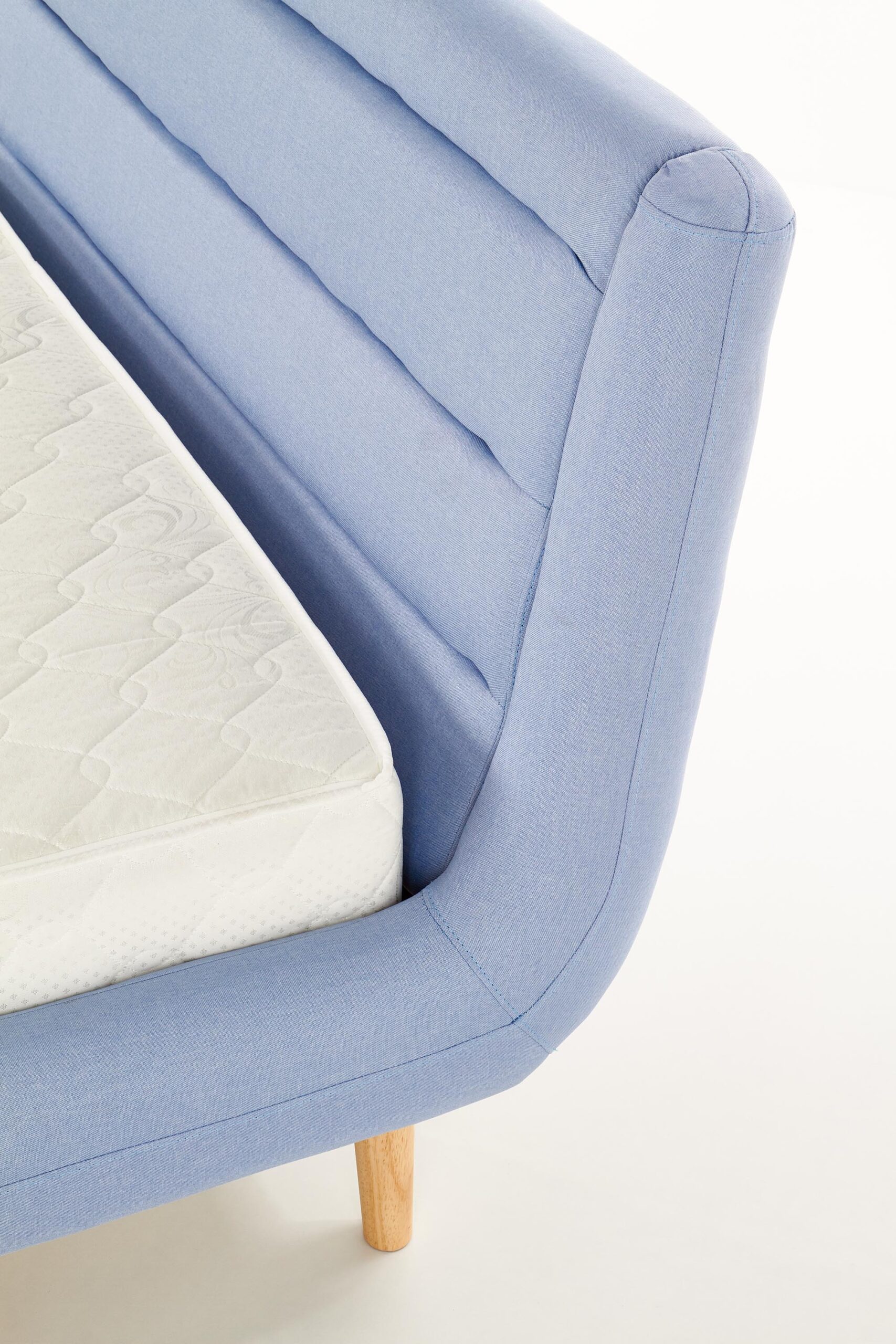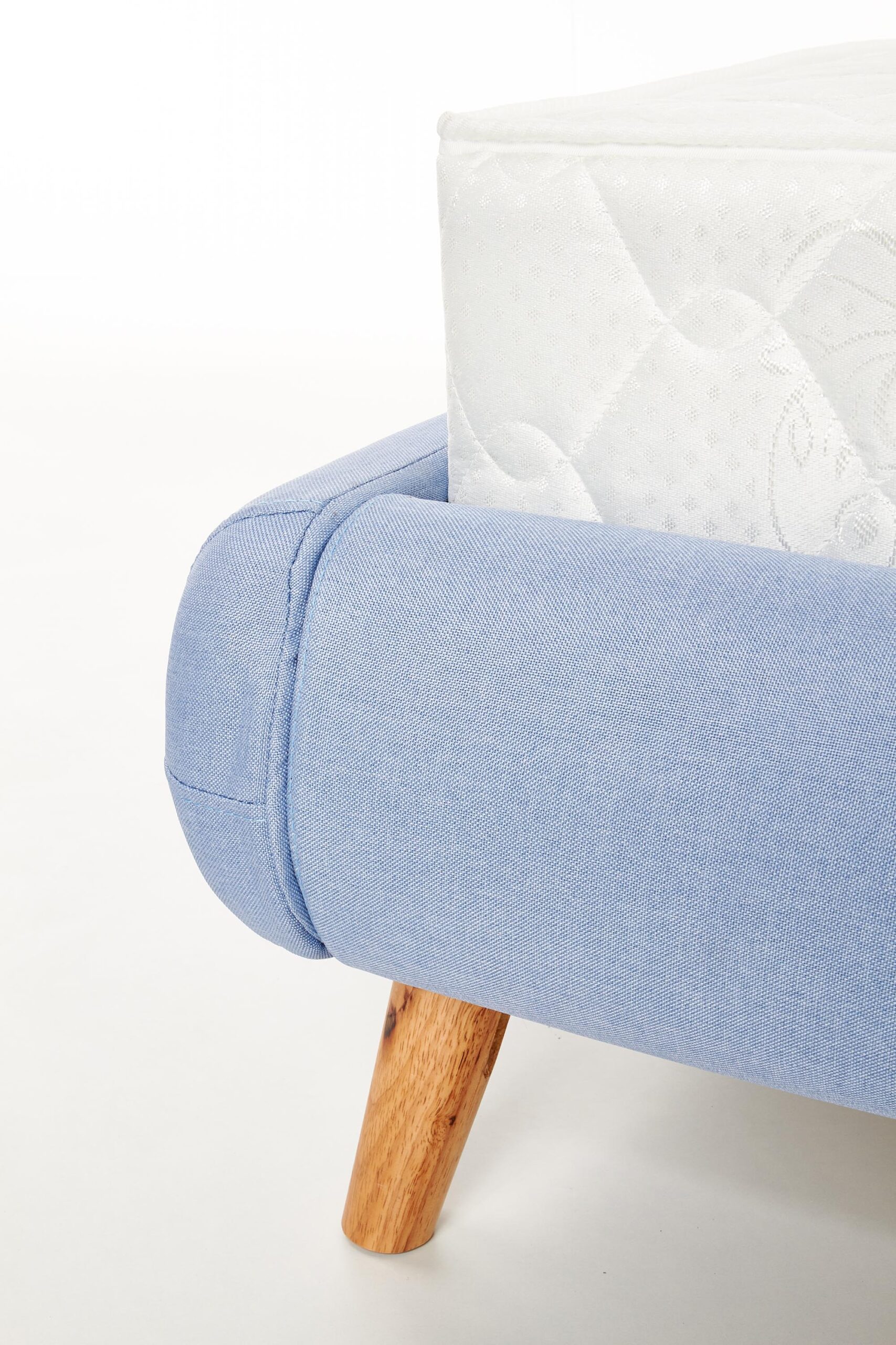 méretek: 179/232/86 cm, anyag: szövet / tömör fa, szín: szövet – kék, fa – natúr