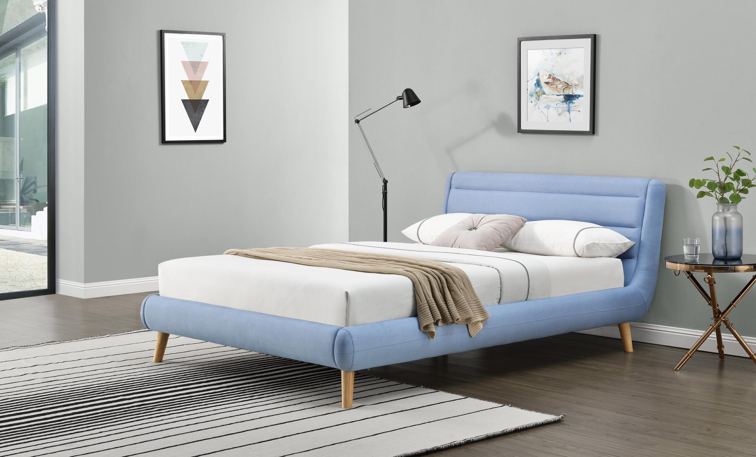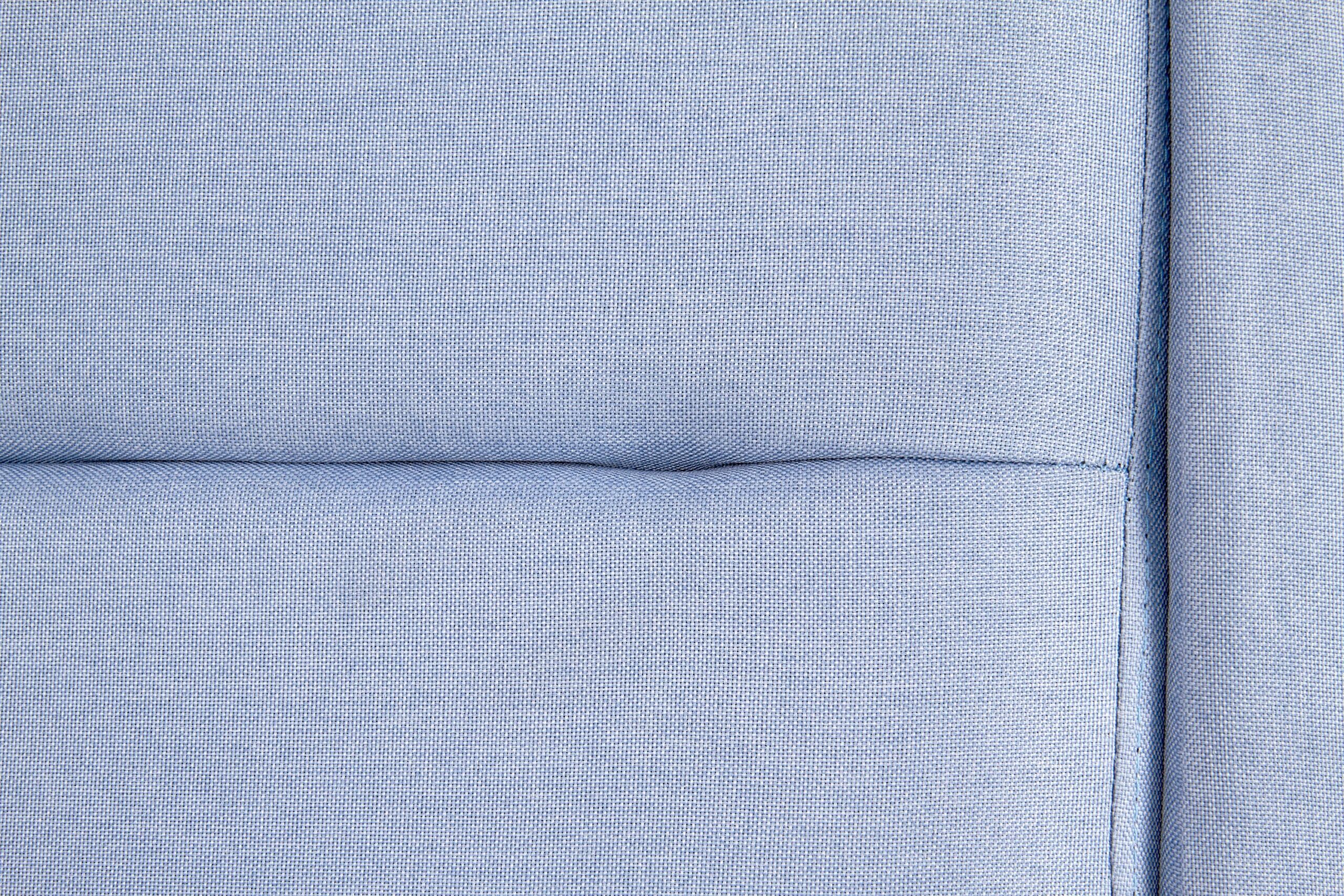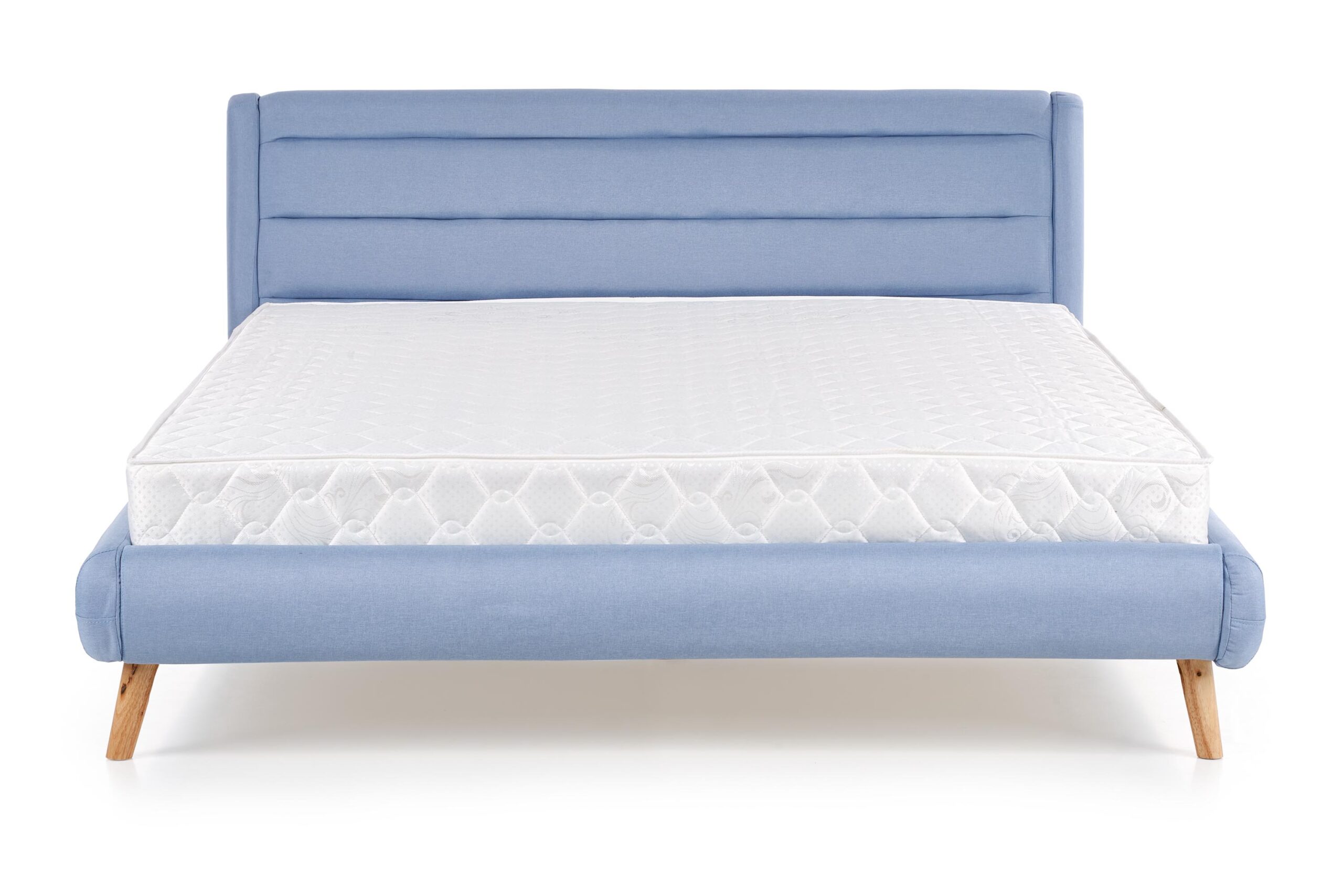 méretek: 179/232/86 cm, anyag: szövet / tömör fa, szín: szövet – kék, fa – natúr