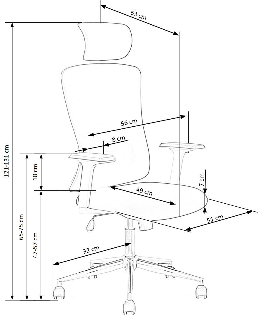 méretek: 56/63 / 121-131 / 47-57 cm, MULTIBLOCK mechanizmus / alumínium alap / állítható háttámla pont / állítható kartámasz / állítható fejtámla, membránszövet / háló, szín: fehér – fekete – szürke