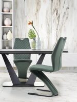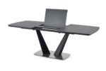 összecsukható asztal, méretek: 160-220 / 90/76 cm, anyaga: üveg / lakkozott MDF / porszórt acél / rozsdamentes acél, szín: asztallap – sötétszürke, lábak – fekete