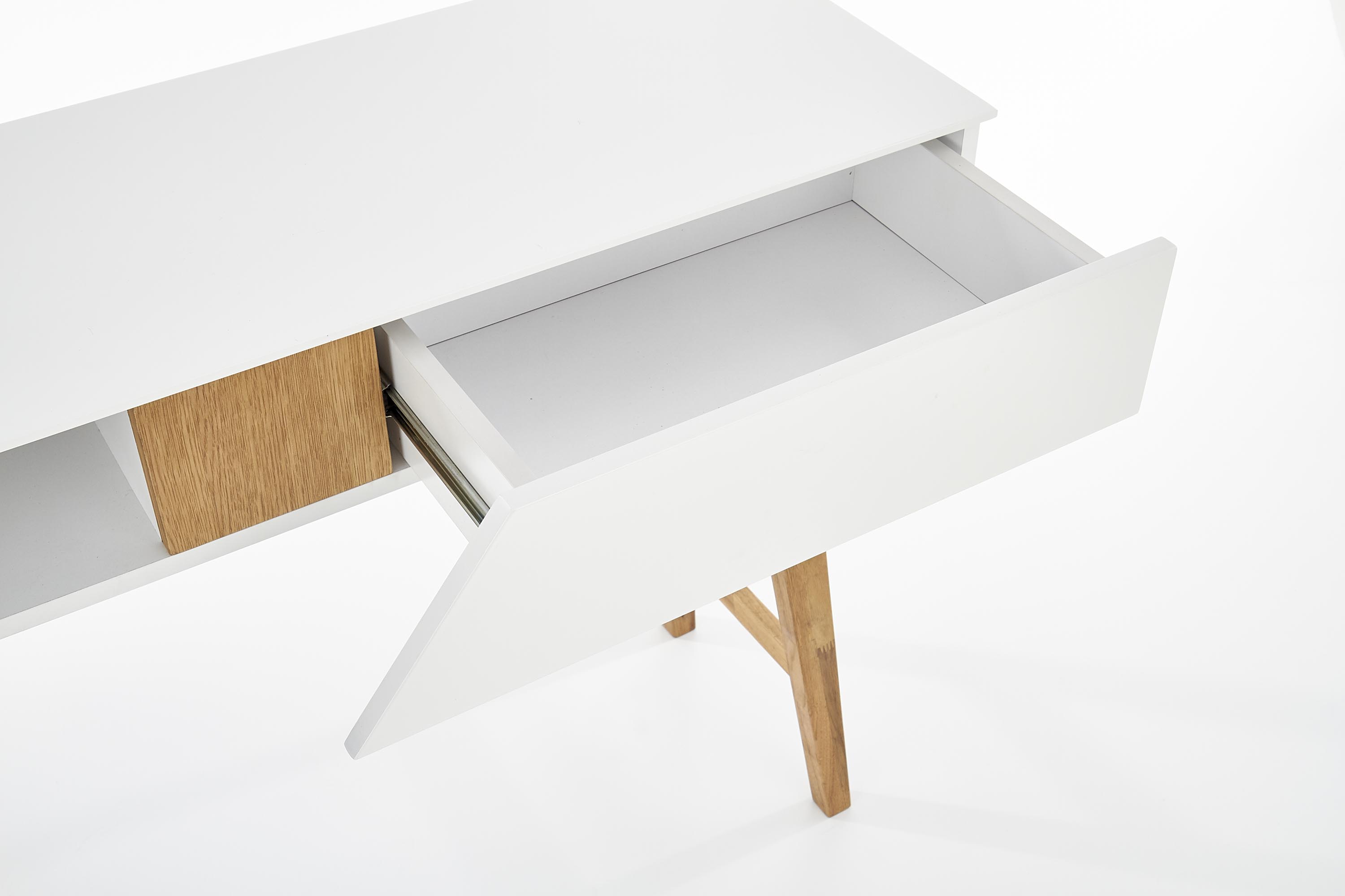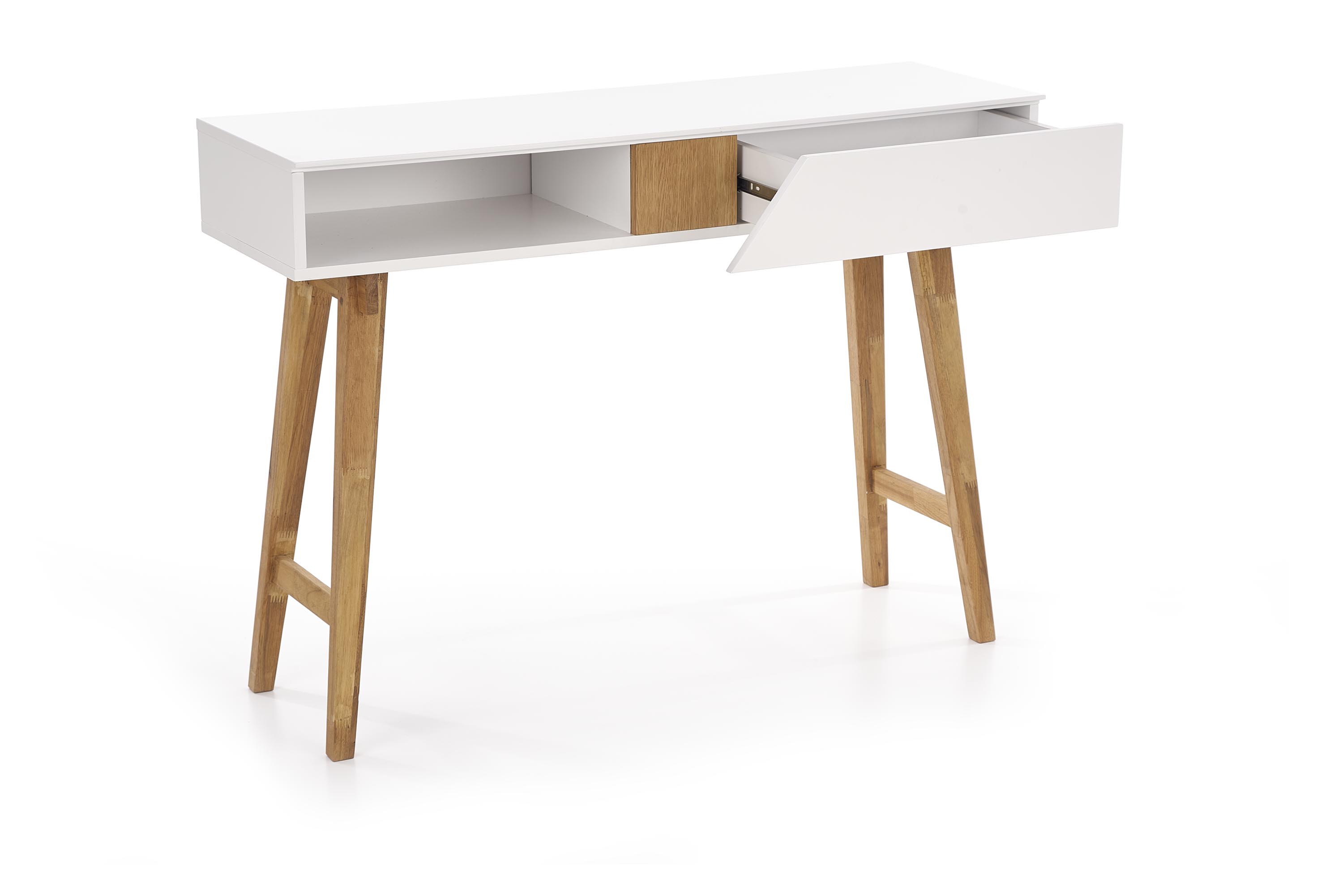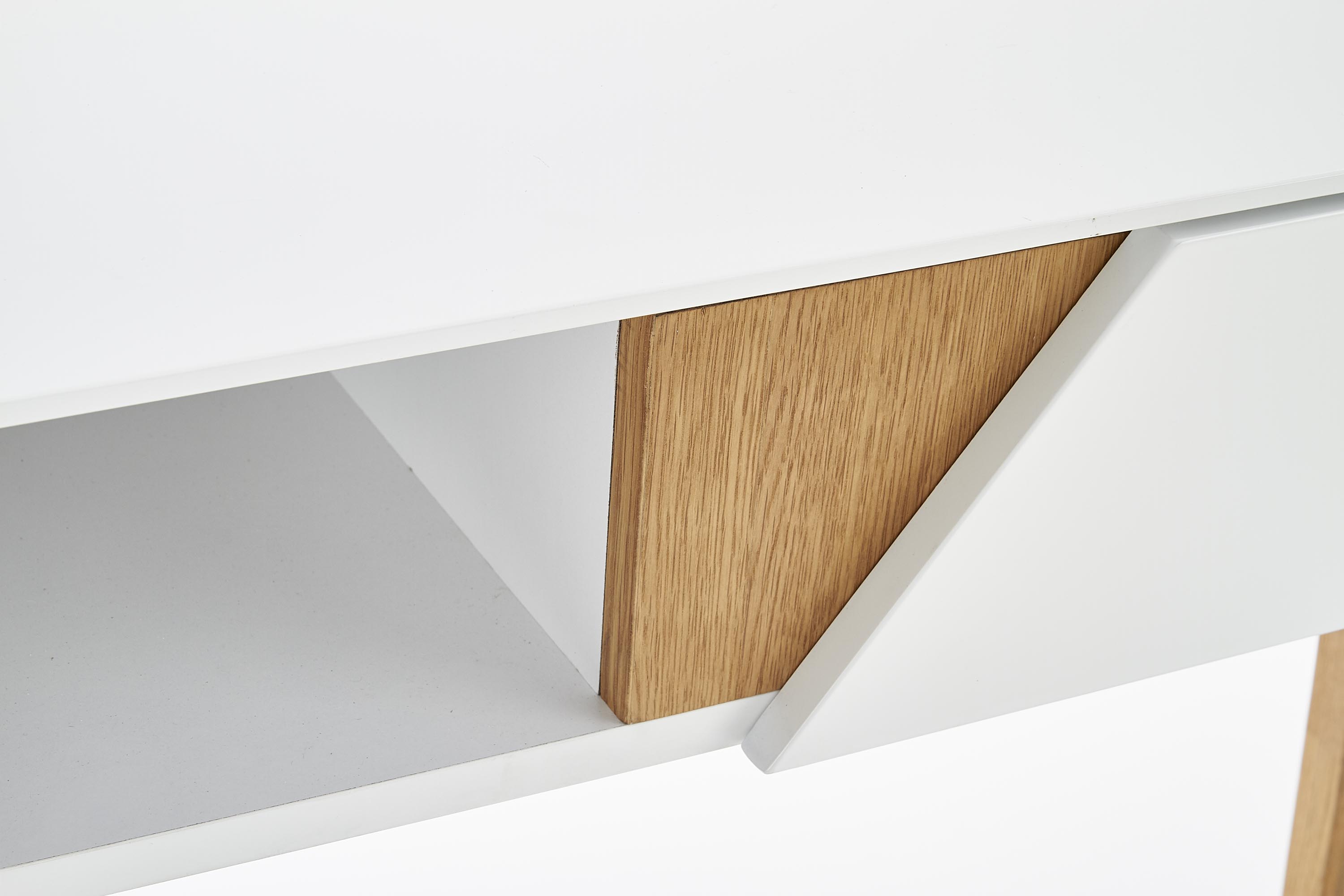 méretek: 110/35/80 cm, anyaga: lakkozott MDF / tömör fa, szín: fehér matt – natúr