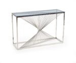 méretek: 120/40/76 cm, anyaga: üveg / krómozott acél, szín: füstös / ezüst