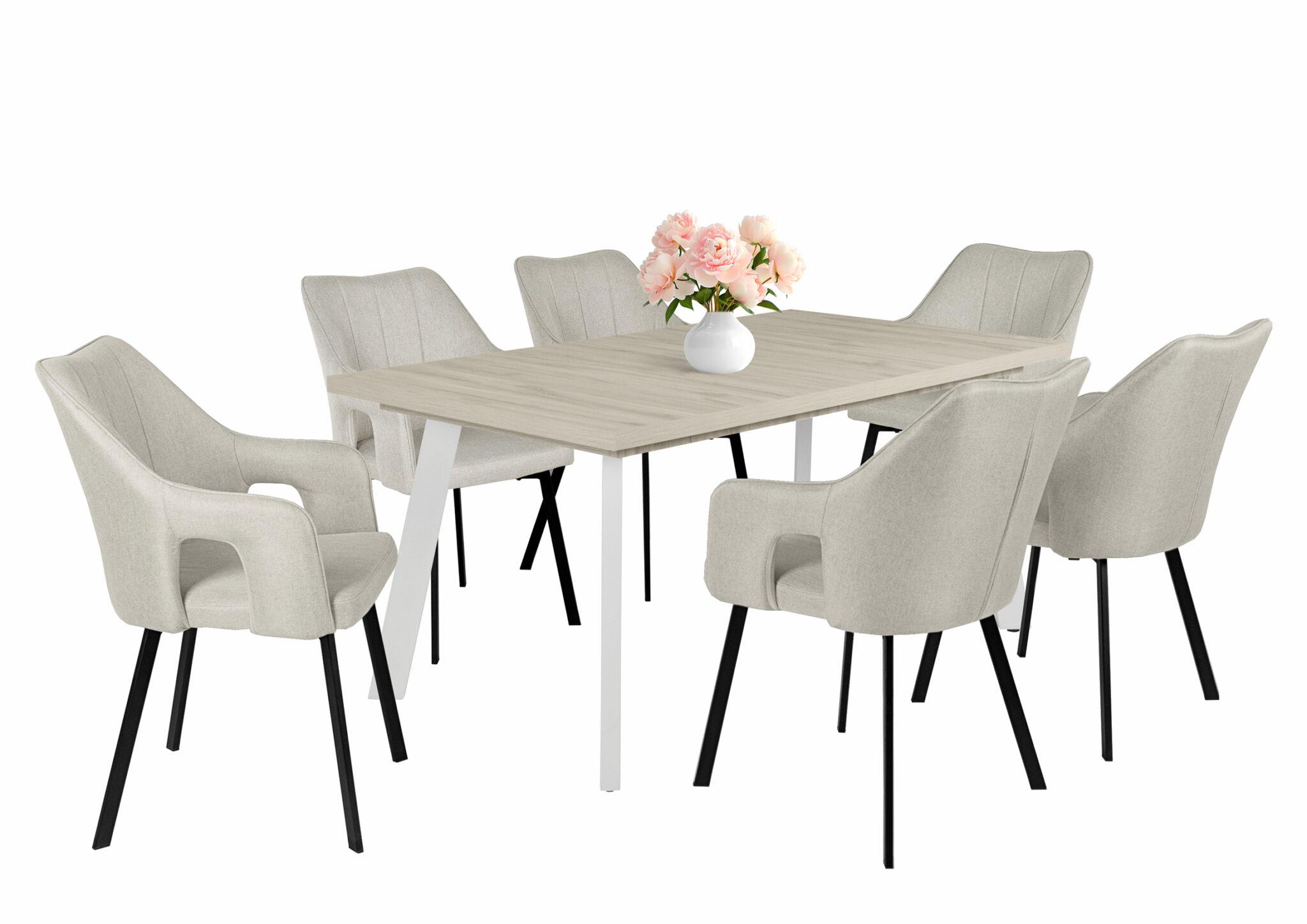 A Norton asztal 160 cm-es méretben, 6 színben kapható: rusztik fehér, katthult, viking tölgy, artisan tölgy, san remo és sötét justus tölgy. A talp matt fekete, matt fekete lábrész kiegészül az asztallapszínnel. Bővíthető 40 cm-es vendéglappal, amely szintén matt fekete, így a vendéglapot behelyezve a lábbal megegyező színkombinációt kapunk.