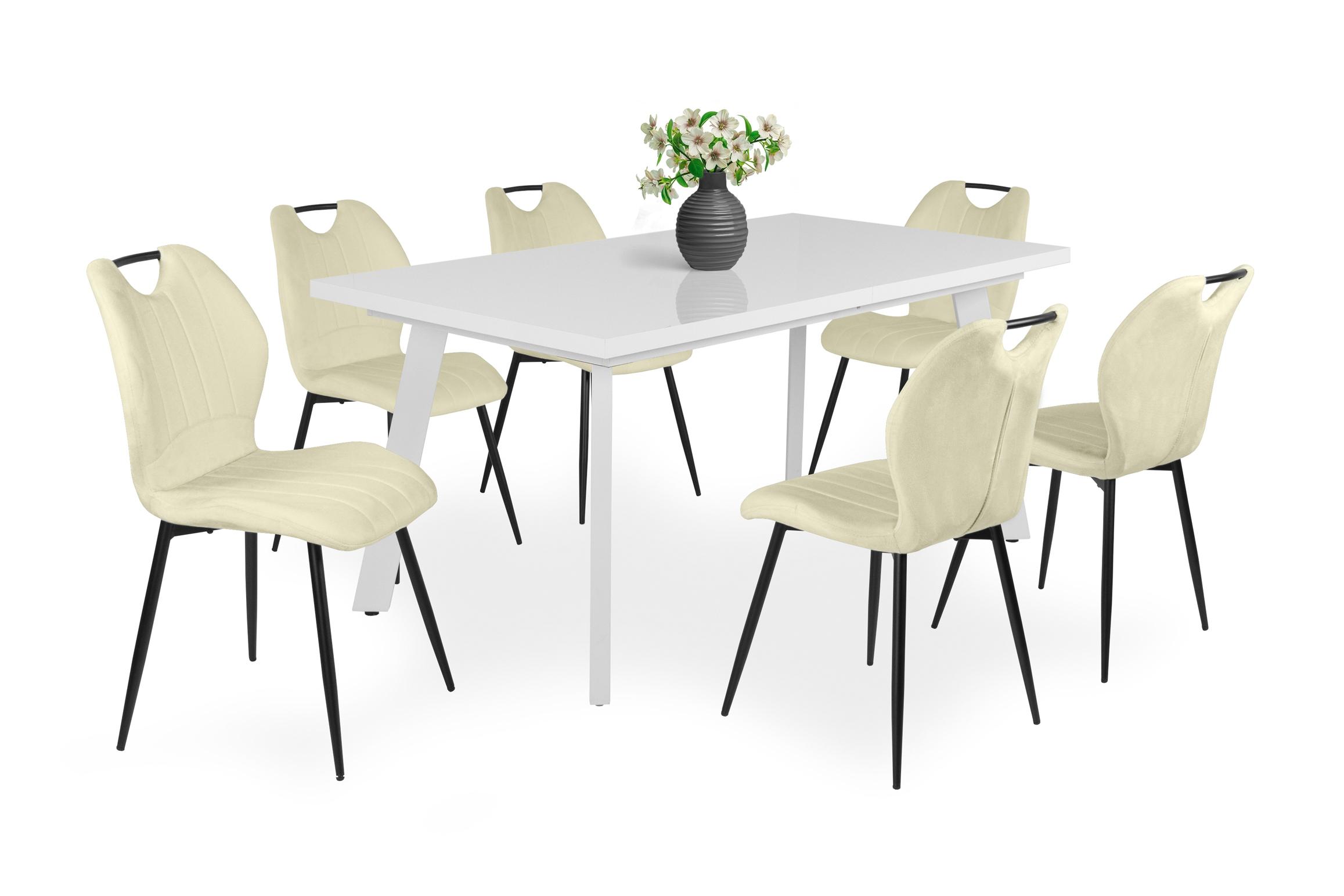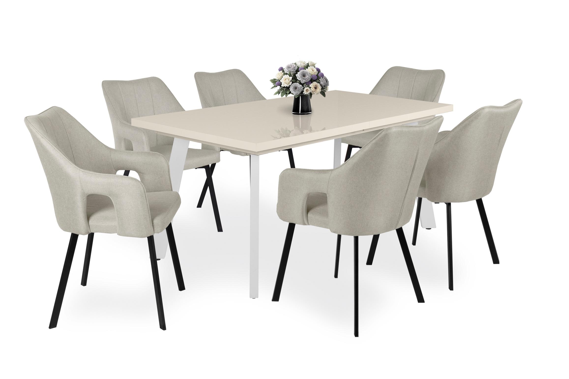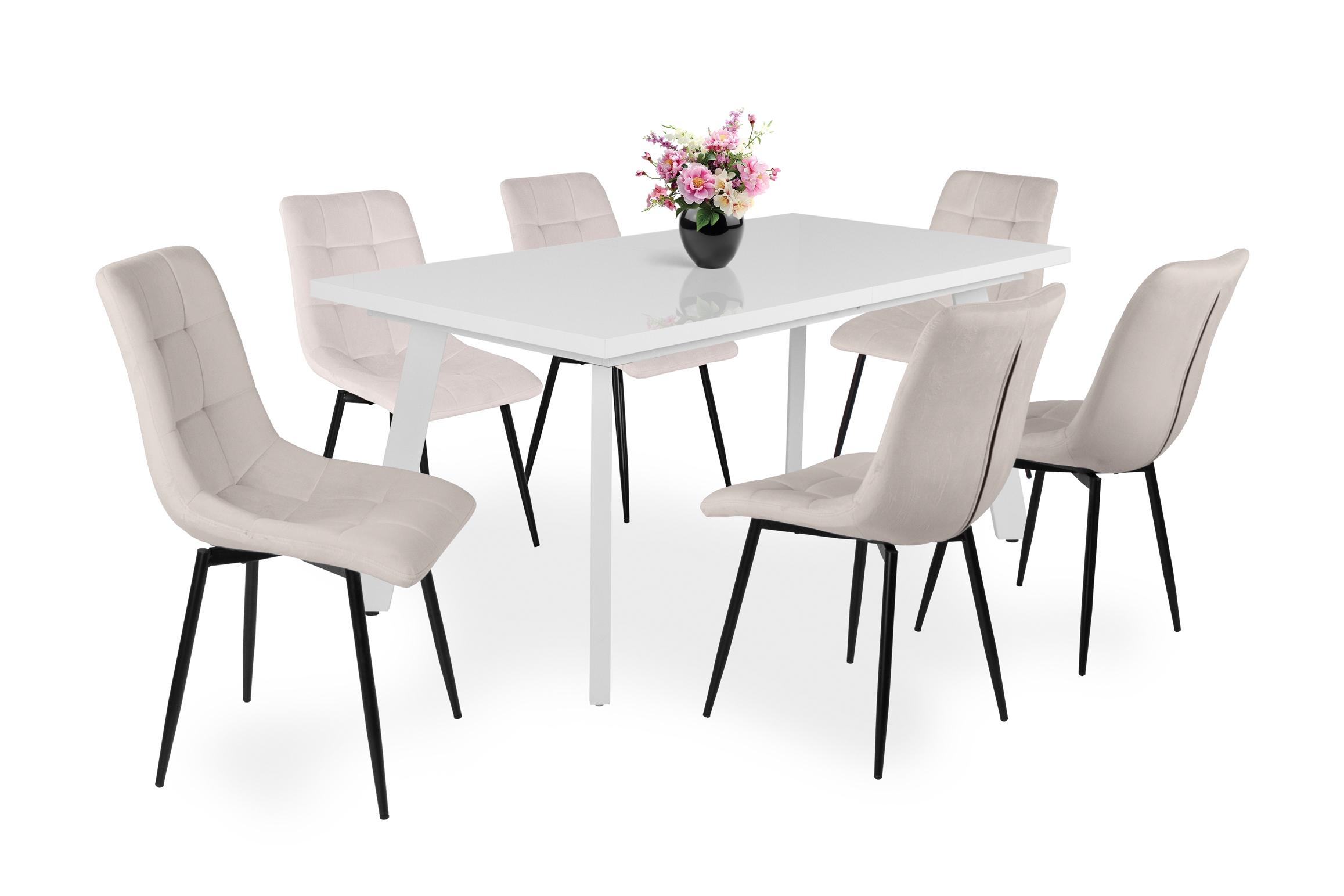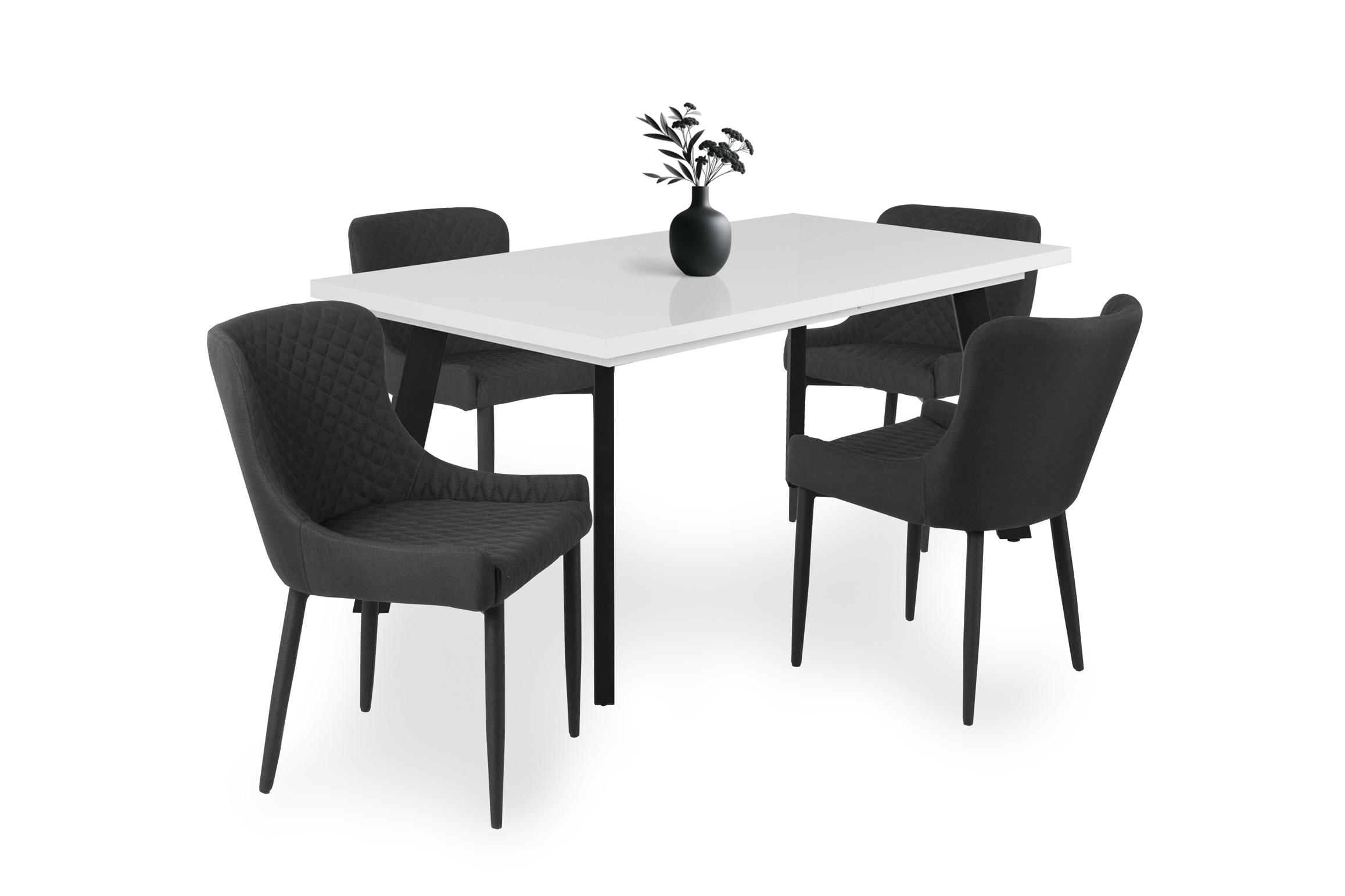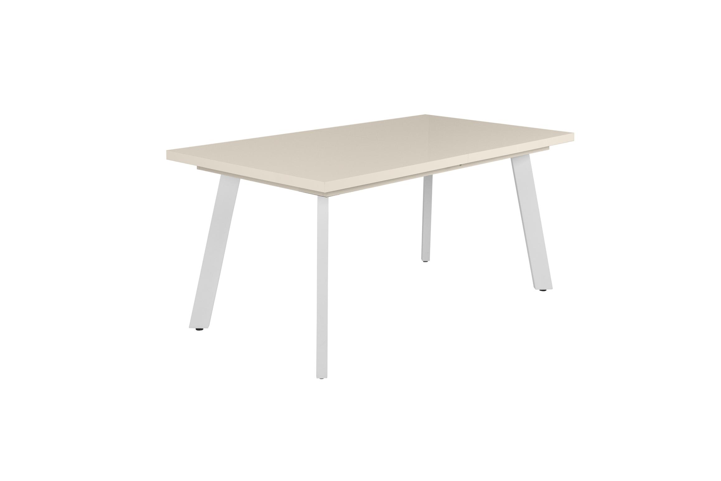 Az állítható, szögletes porfestett fém láb szabadon variálható az asztallap színekkel. Az asztallap 4 magasfényű színben, a láb fekete vagy fehér színben érhető el.
