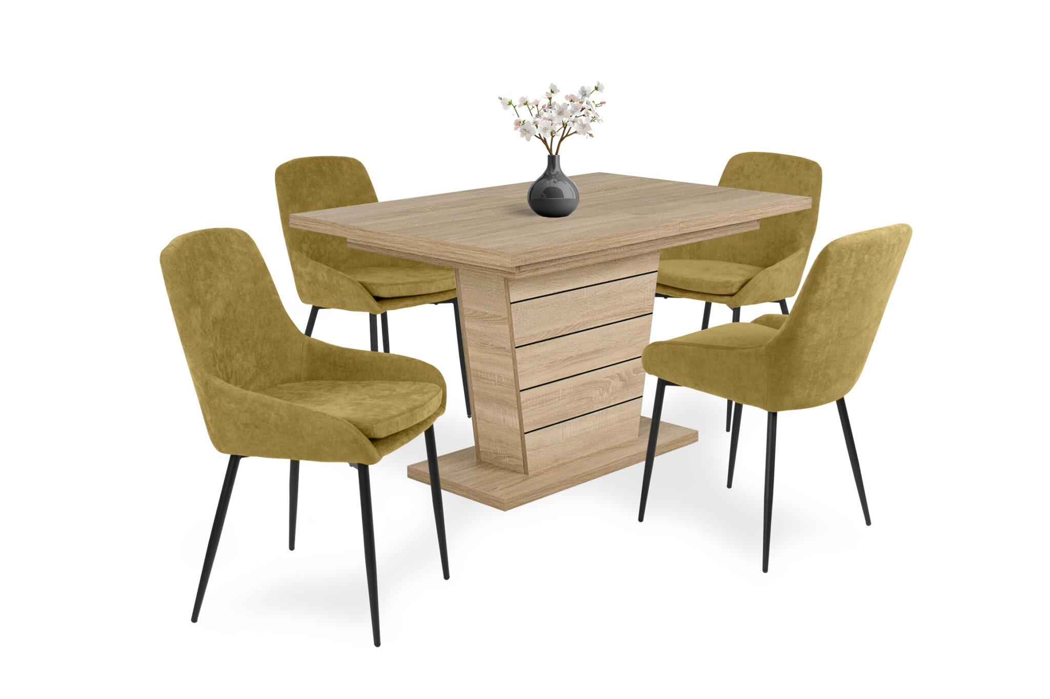 4 színben elérhető szövet kárpit, fekete porfestett fém láb. A párnarész tépőzáras, levehető és a huzata zipzáras, mosható.