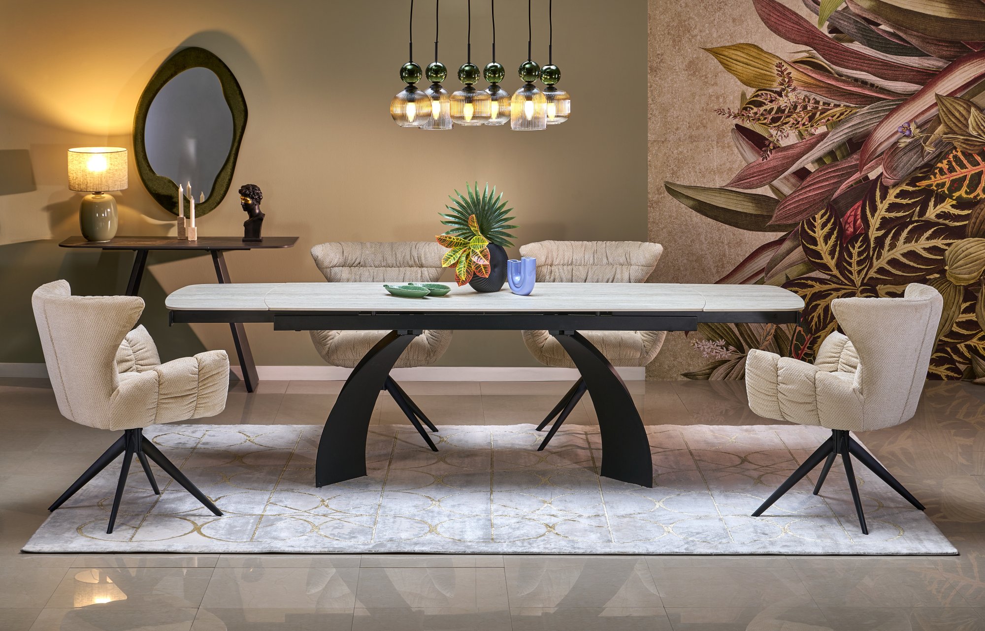 Vitrus bővíthető étkezőasztal – világos travertin / fekete