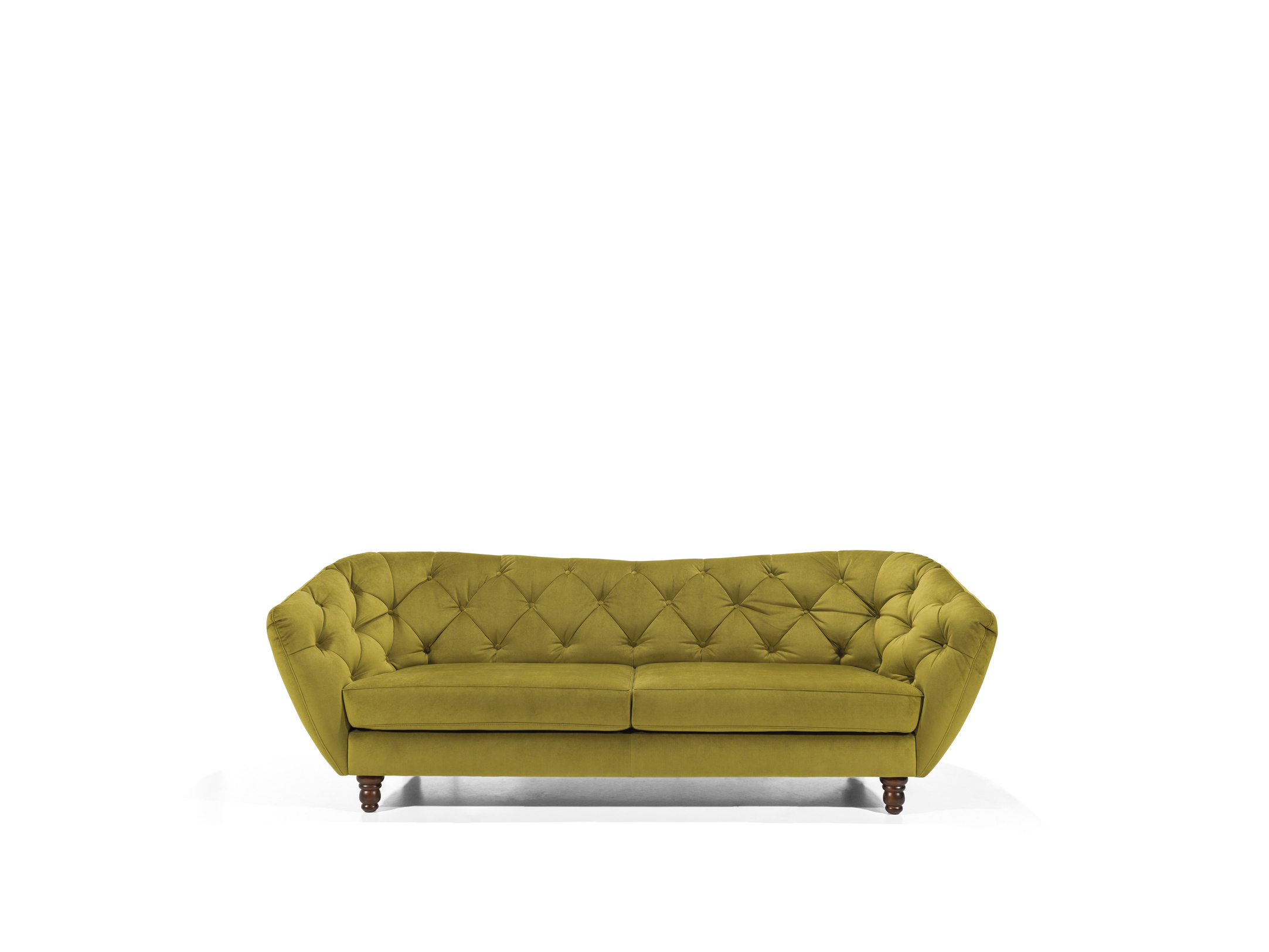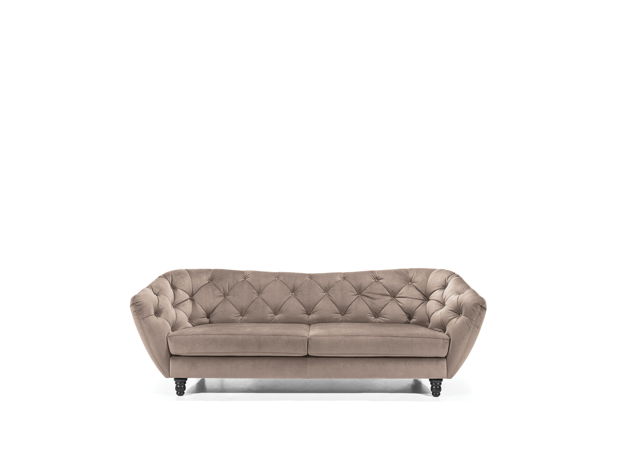 Extravagáns kanapé, amely 2 és 3 személyes kialakításban is megrendelhető. A paletta minden színében és kárpit típusában választható és egyedileg rendelhető -akár valódi bőr kárpittal is. Mélytűzött chesterfield stílusú bútorcsalád, amely elegáns, különc megjelenésével gyönyörűvé varázsol bármely enteriőrt. Az ülőfelületet hullámrugó és hideg habszivacs teszi ellenállhatatlanul kényelmessé. Választható esztergált fa, vagy krómozott fém lábakkal, de nem csak a lábak anyagát választhatja meg, a háttámla részen lévő tűzés pontokon kérhető színazonos kárpittal bevont-, vagy kristály gombokkal is. Egyedi megjelenésű, csodaszép bútor, csak Önnek egyenesen a gyárból.