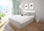 A Zeusz ágykeret 18 mm-es laminált bútorlapból készül. A fejvég és lábvég duplungolt (36 mm). Ívesített, műanyag kengyelű, felfelé nyíló teleszkópos ágyráccsal rendelkezik. Az ágykerethez éjjeliszekrény is rendelhető. A magasfényű betétek cserélhetőek. (az ágykeret a fehér és antracit magasfényű betéteket is tartalmazza)