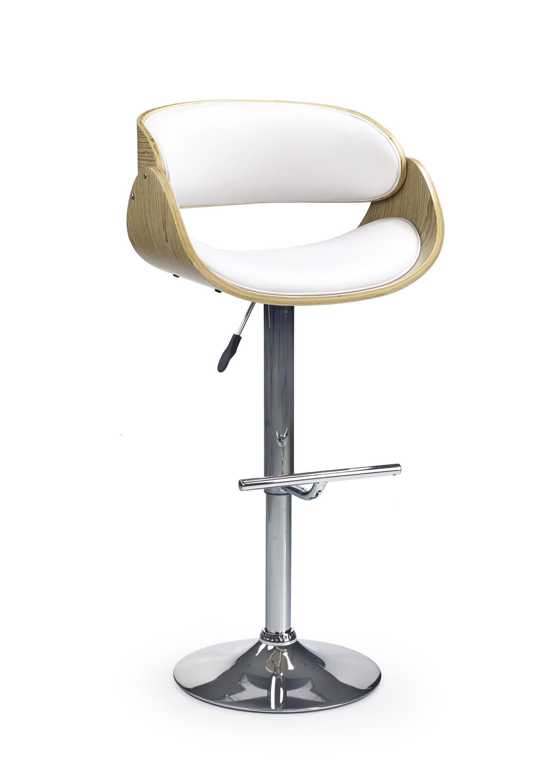 méretek: 53/47 / 89ö111 cm, anyaga: krómacél / hajlított rétegelt lemez / öko bőr, szín: fa - világos tölgy, öko bőr - fehér