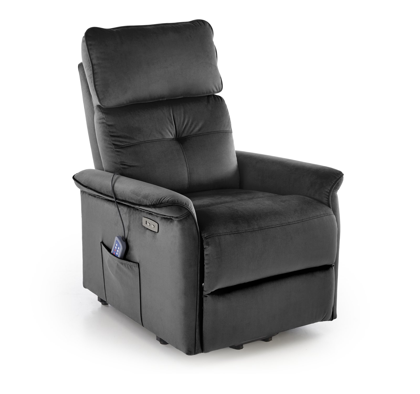SEMIR 2 elektromos relax fotel, emelő- és masszázs funkcióval, szín: fekete