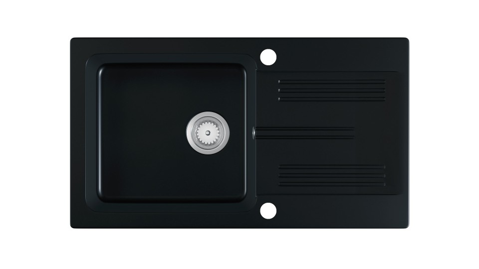 gránit mosogató, kamramélység: 16 cm, beépítés: szekrény 50 cm széles, automata szifon 3 1/2 „, mosogatógép és szemétdaráló csatlakoztatási lehetőséggel, 2 lyuk gyárilag, szín: fekete matrac