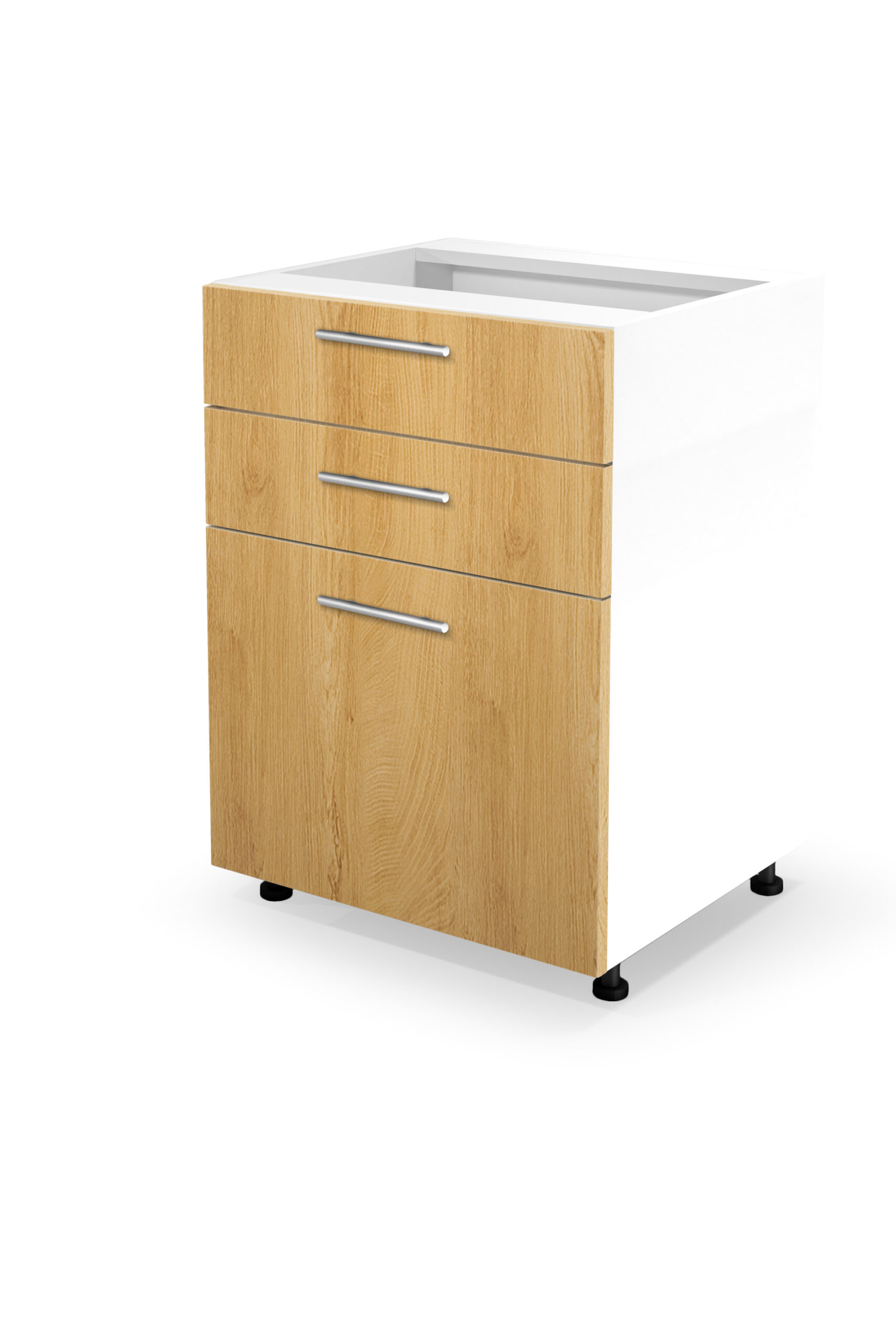 VENTO D3S-60/82 alsó fiókos szekrény, Hettich mechanikus előlap: mézes tölgy (1p = 1db)