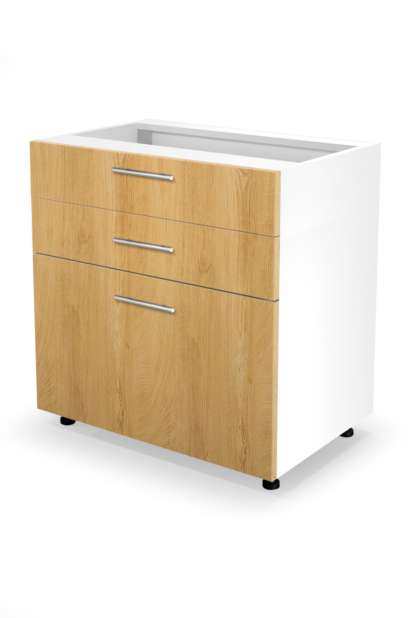 VENTO D3S-80/82 alsó fiókos szekrény, Hettich mechanikus előlap: mézes tölgy (1p = 1db)
